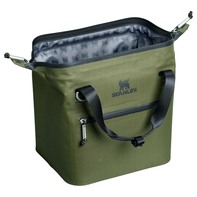 With a 10-can storage capacity, the All Day Julienne Mini Cooler keeps your goods nice and cool for 12 hours. The unique “doctor’s bag” hinge top pops open to help with unpacking. Load up with reusable ice packs, pop it shut and the sturdy zipper keeps things safely stored. The snap-top handles have a comfortable grip, while a zippered pocket protects your valuables. There’s also the option to attach the strap to sling the cooler over your shoulder. From acai bowls to charcuterie, sparkling beverages and wine are ready to be enjoyed. Don’t forget to pack all your favorite snacks and drinks in Stanley style.