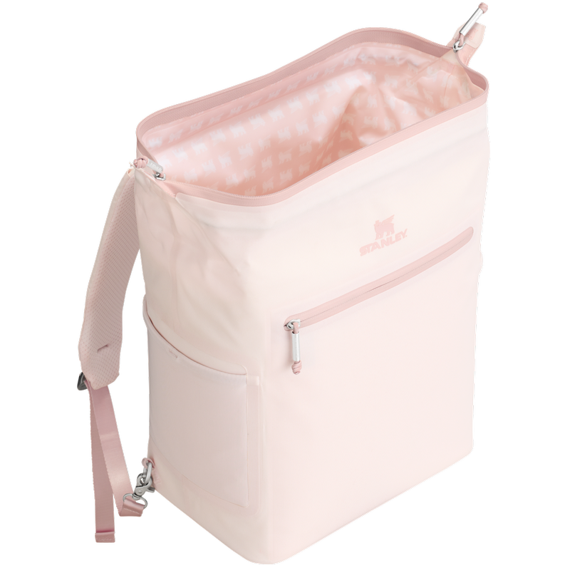 With a 20-can storage capacity, the All Day Madeleine Midi Cooler Backpack maintains the perfect chill for 24 hours. There’s even a mesh pocket designed to fit your Quencher or bottled beverage of choice. The unique “doctor’s bag” hinge top pops open to help with unpacking, and padded straps make carrying more comfortable. Load up with reusable ice packs, pop it shut and the sturdy zipper keeps it all safely stored. A discreet zipper pocket on the cooler’s back helps to protect valuables. From smoothies to fresh sandwiches, your favorite wine and beverages are ready to share. Don’t forget to pack all your favorite snacks and drinks in Stanley style.