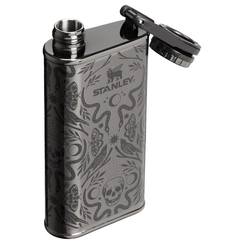 The 8-ounce Easy-Fill Flask is made to slide right into your pocket or bag. The wide opening makes filling simple, no funnel required. With stainless steel construction and a leakproof tethered cap, for durability and storage you can count on.