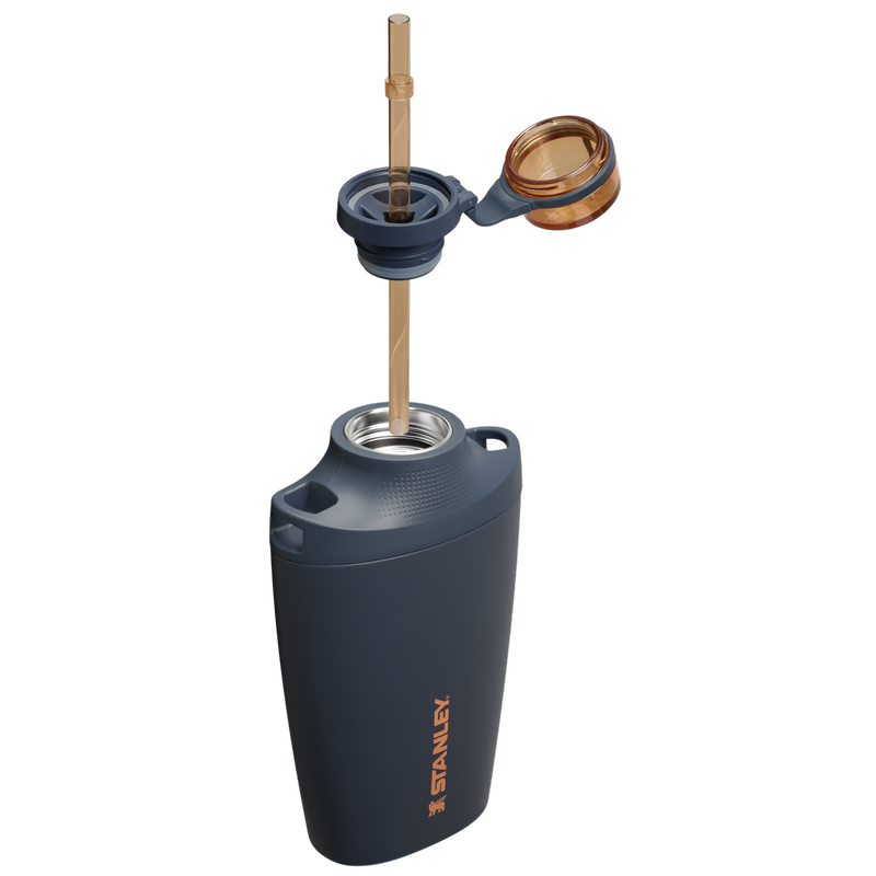 To fill the Stanley Cross Bottle, spin the lid off along the hinge and twist it shut for a leakproof seal. The convenient Tritan lid cover stays tethered while you drink. Just undo the cap to reveal the removable straw, and twist it back on to protect your sip space. Recycled stainless steel and double-wall vacuum insulation means your water stays ice cold for hours. Whether you’re exploring new cities or sprinting to class, The Stanley Cross Bottle is ready when thirst strikes.